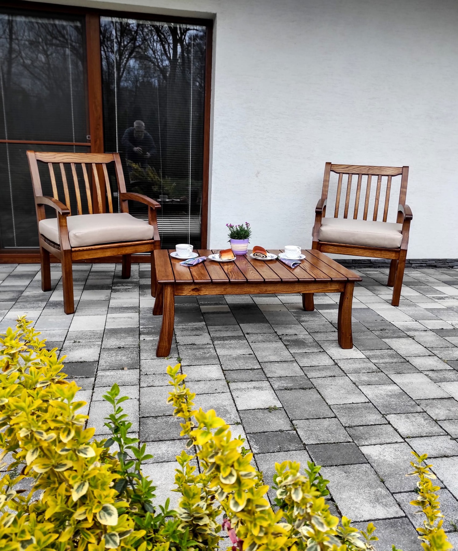 a stolík,takže si môžete vyskladať celý záhradný set v jednotnom štýle.