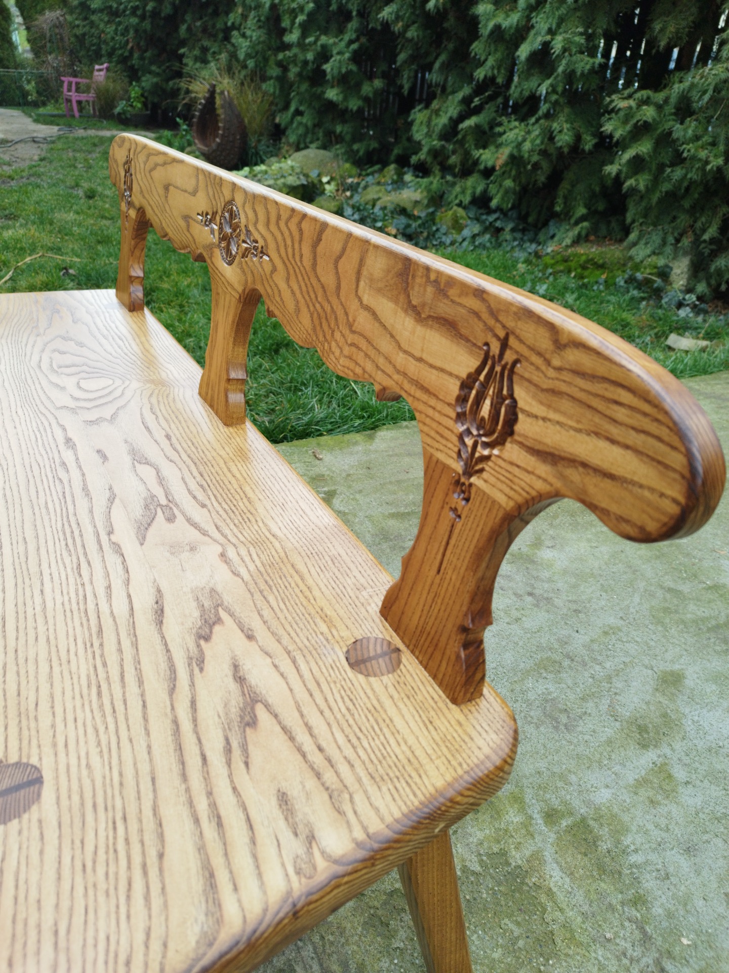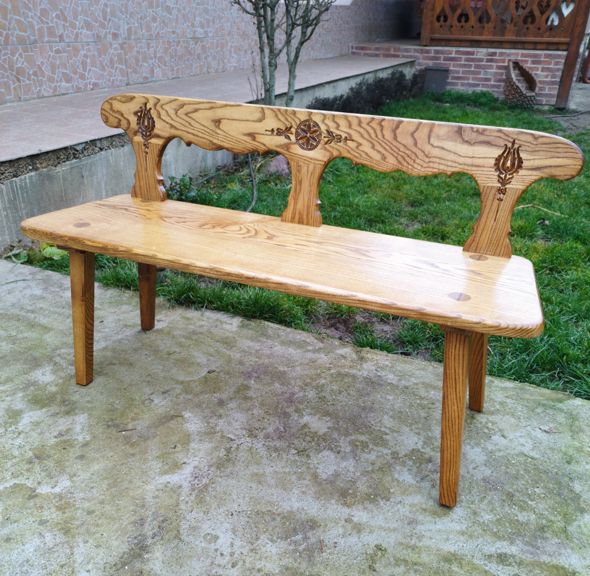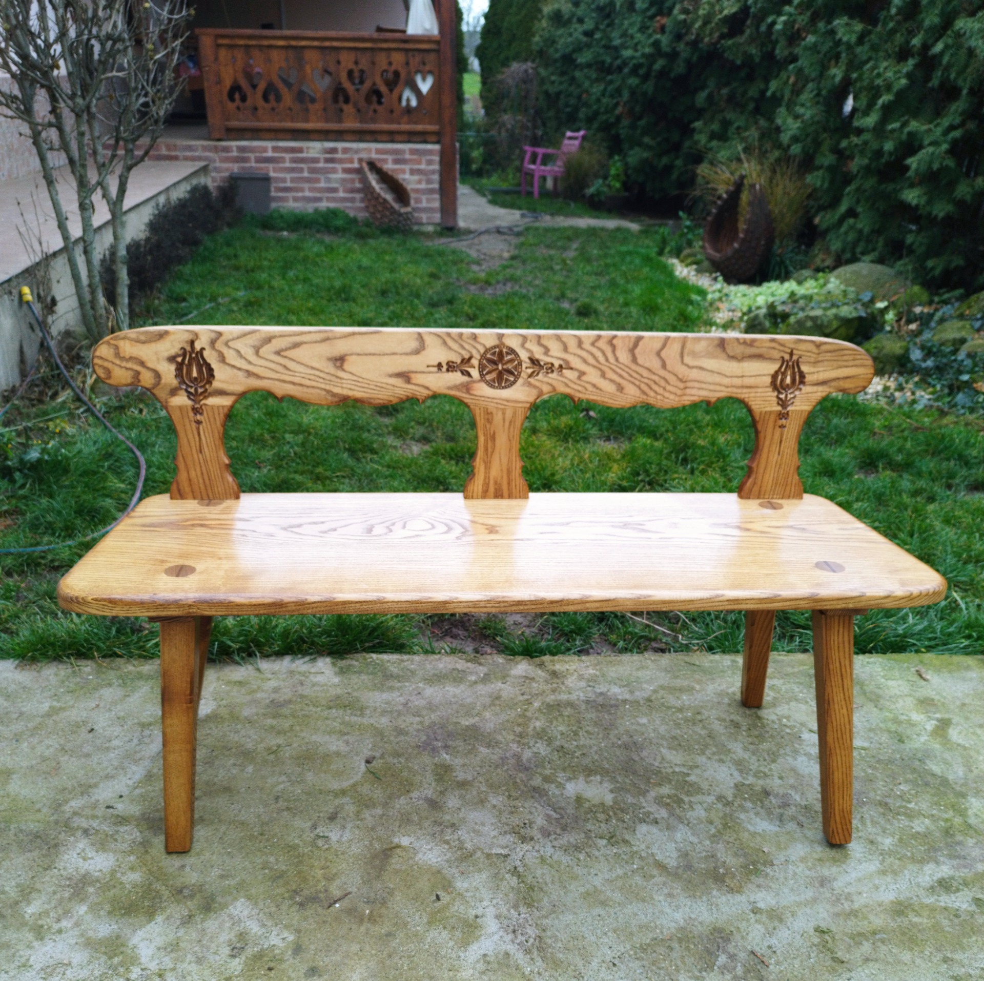 Tradičné spoje a precízne opracovanie zaručujú, že táto lavička prežije generácie a stane sa rodinným pokladom.