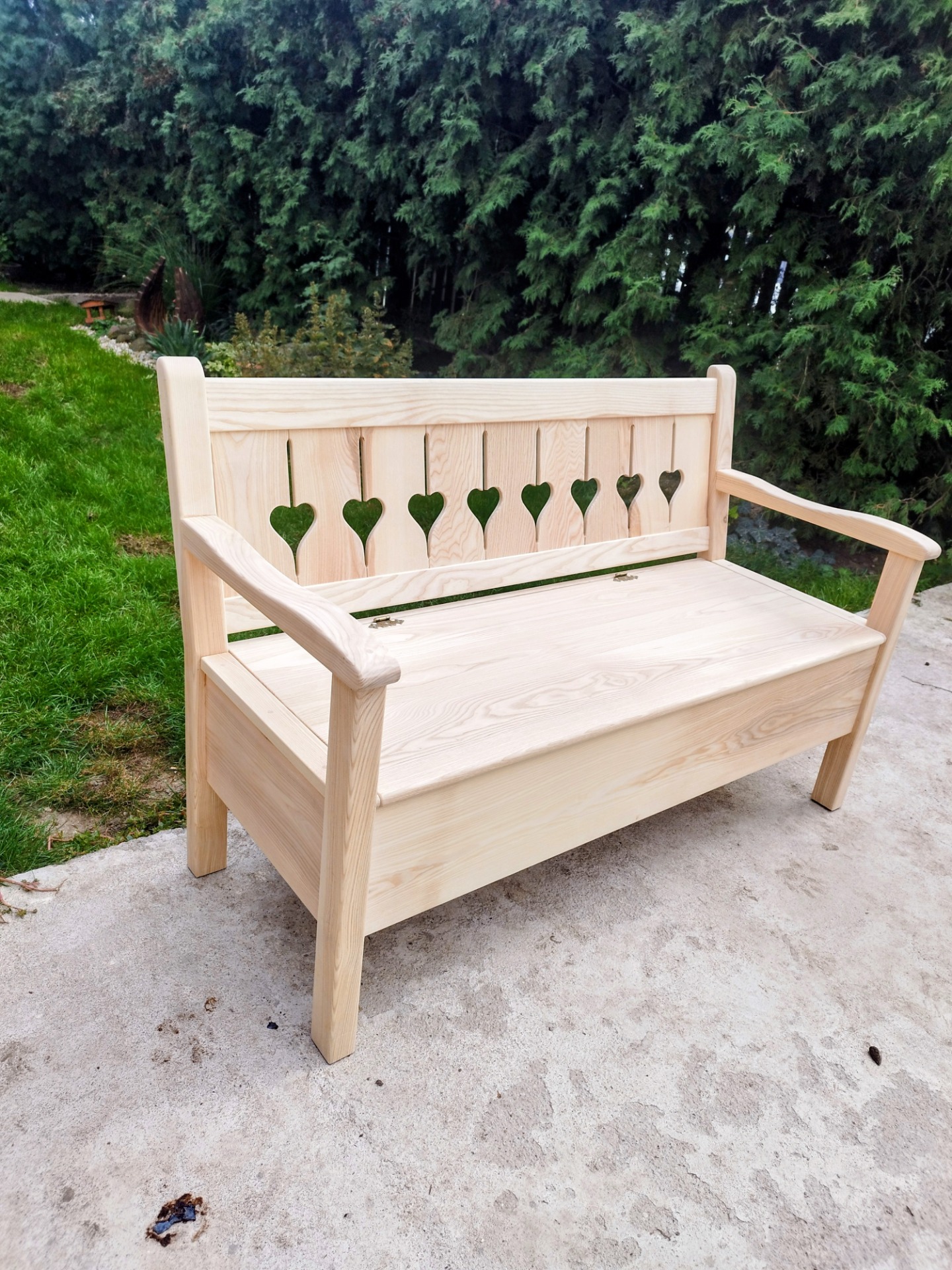 Okrem tejto verzie s úložným priestorom vyrábam aj lavičky Srdiečko bez úložného priestoru – pre tých, ktorí preferujú klasický, jednoduchý dizajn.