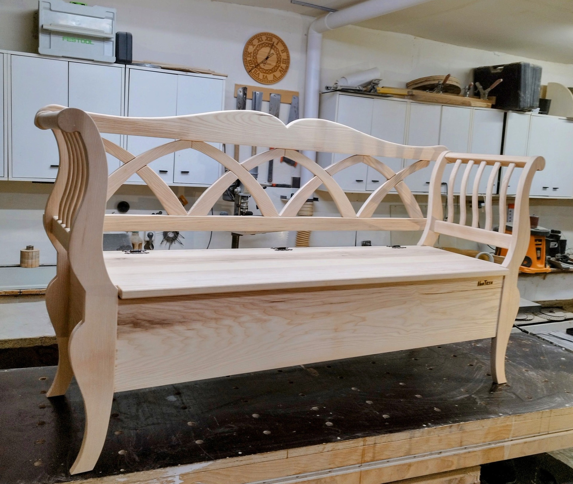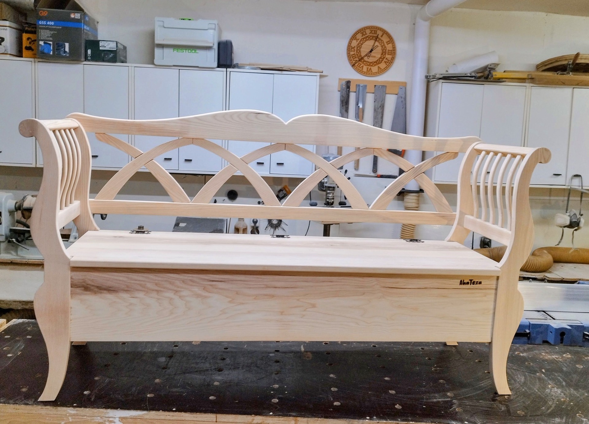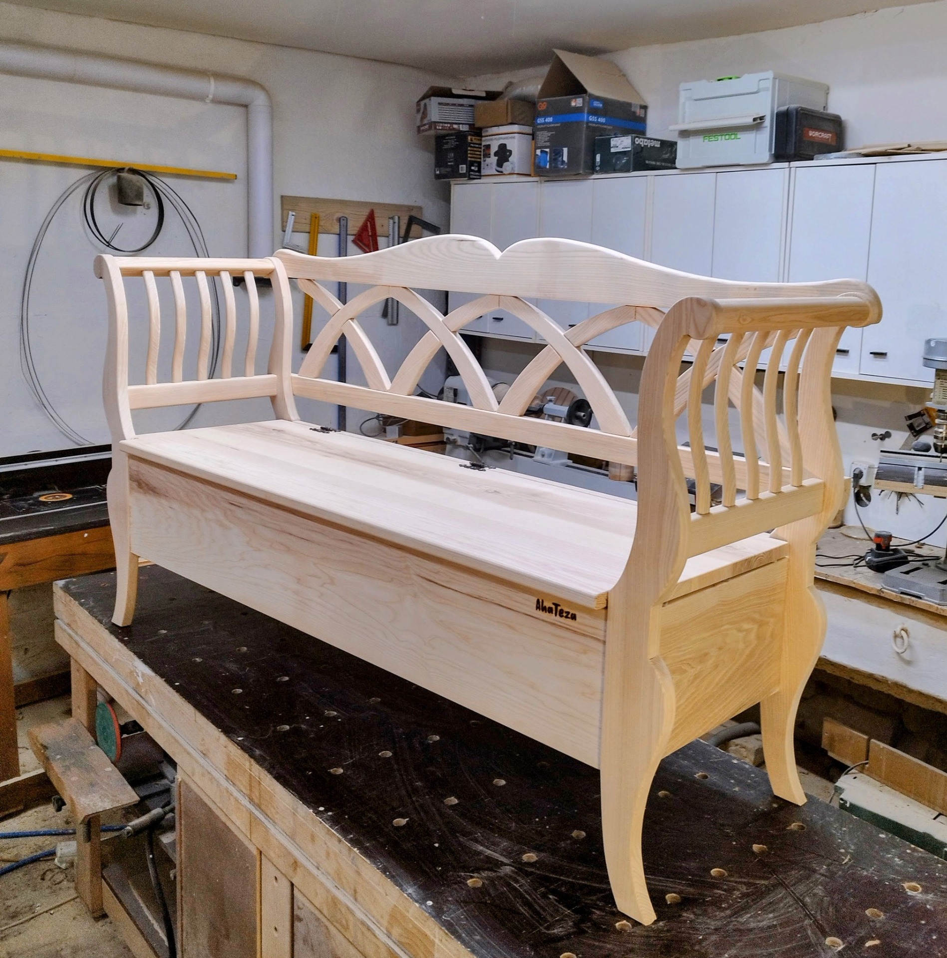 Táto lavička  s tradičný ľudový dizajnom je precízne  ručne vyrobená z kvalitného jaseňového ktorá vyniká  svojou pevnosťou,  Je vhodná ako dizajnový doplnok napríklad na terasu, do vidieckeho domu alebo ako súčasť tradične ladeného priestoru.